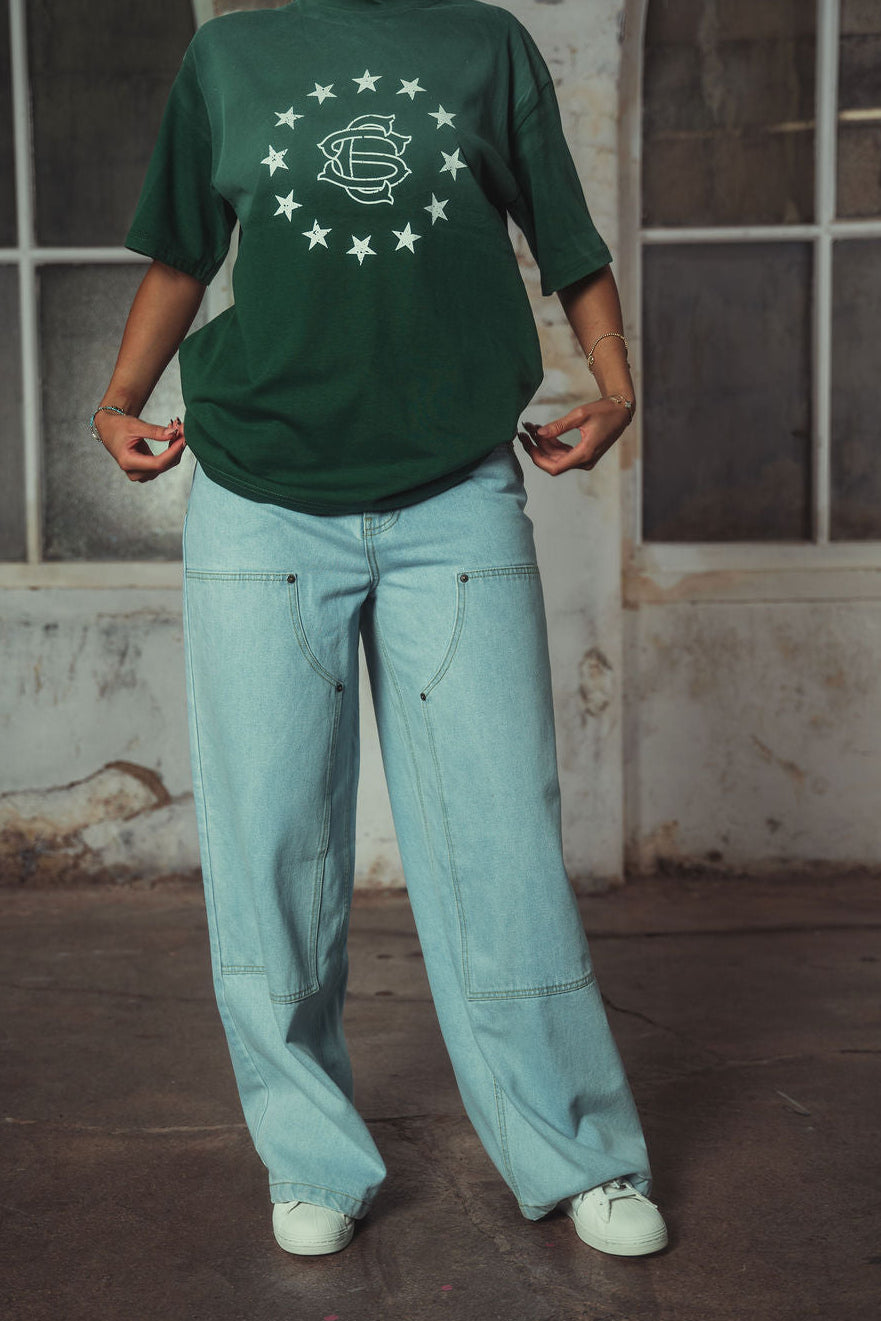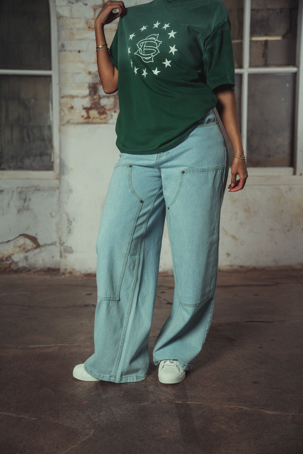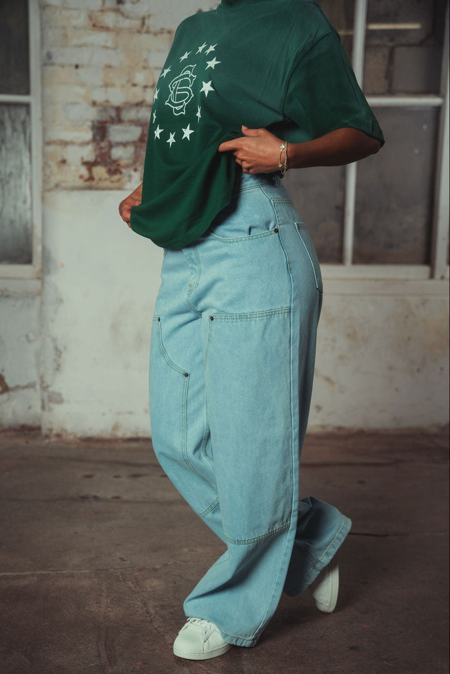Our Soko jeans combine carpenter detailing with a relaxed wide-leg silhouette, these light blue-wash jeans redefine everyday denim with a clean, statement finish.