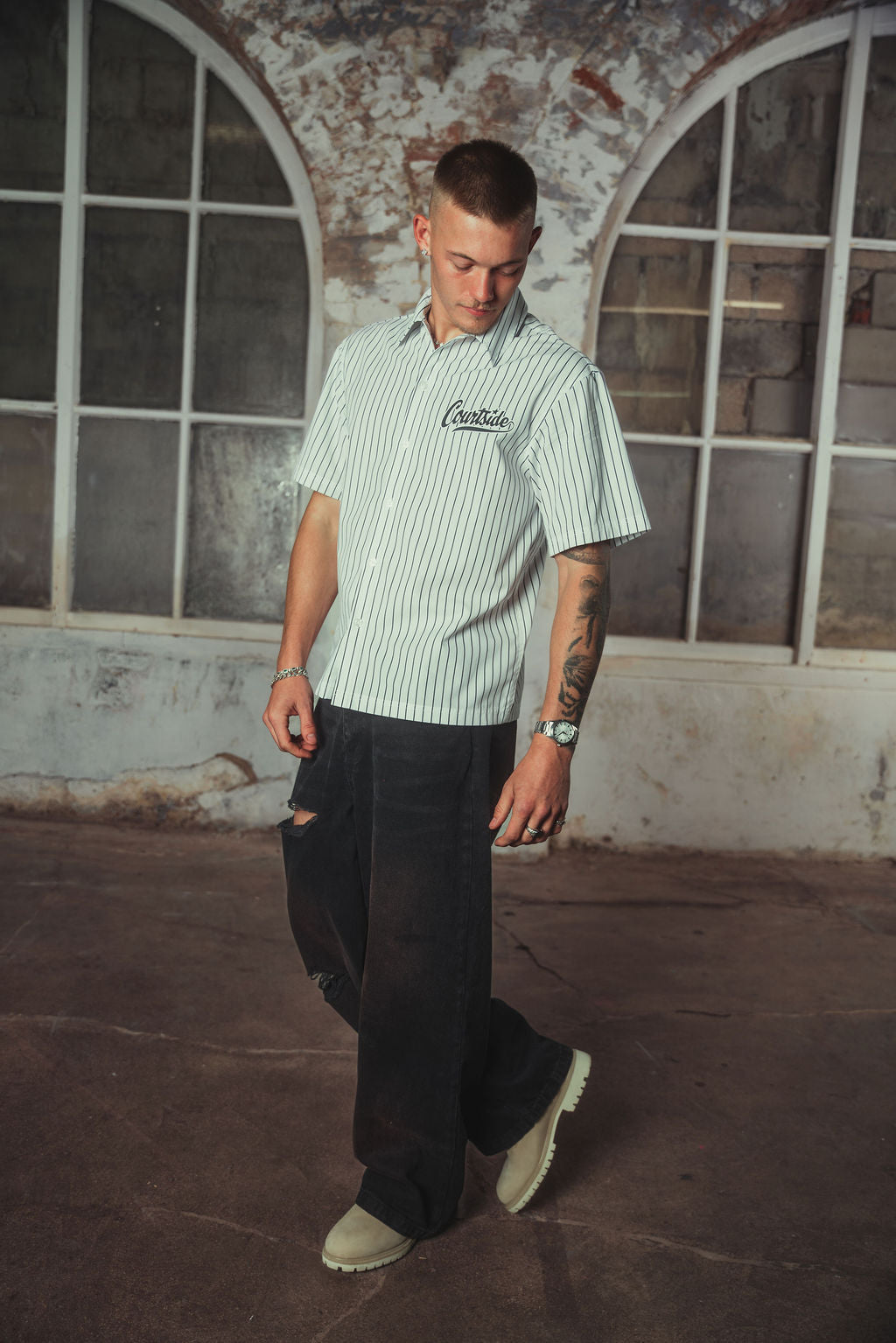 The Wade Jean features an oversized, baggy-leg fit in black washed denim, finished with extreme rip detailing for a worn-in, statement look.